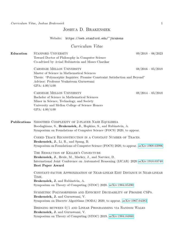 Joshua D. Brakensiek | PDF | Carnegie Mellon University | Discrete