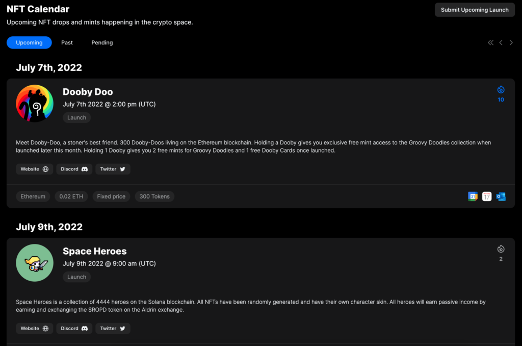 Source : www.nftdropscalendar.io